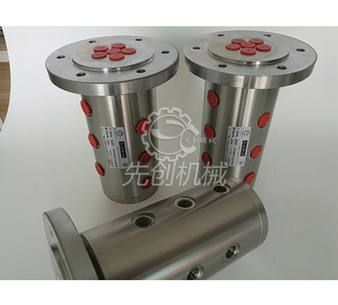 气液组合旋转接头,支持中心带通孔,主要为工程机械臂设计,支持集成导电滑环,内部设立大通径能够在恶劣的环境中工作,内部采用高精度轴承支撑整个转子的平衡旋转。